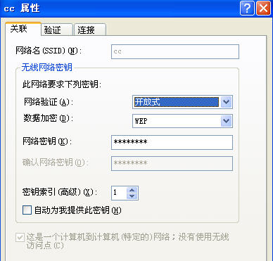 3、第三,在主机“无线网络配置”选项卡里,首选网络下,点击“添加”,为主机添加一个SSID。网络名要用英文字母或数字的组合,如abc123;网络验证:开放式;数据加密:WEB;网络密钥:可以输入5或13位ASCII字符 或 10或26位十六进制字符;不要勾选“自动为我提供此密钥”。如图三所示: